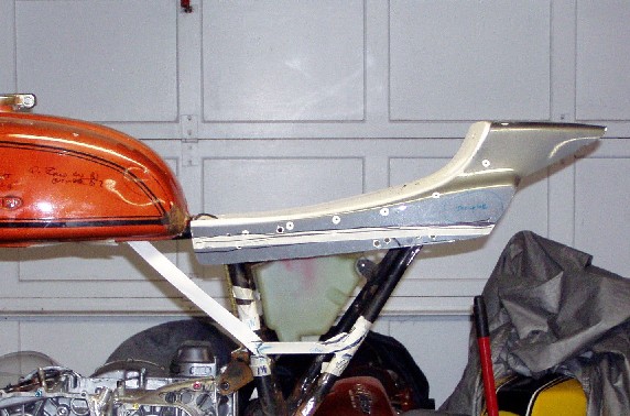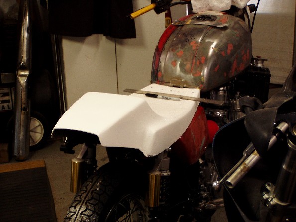 Flat track style seats come in variety of shapes and sizes. This one was purchase used from Gordon Lamb who used to have it on the Gray Dog ( at least that's what I think he called it). As we are often reminded, Size Matters, and when it comes to seats, that is certainly true. I liked the shape but to my eye, the hump was too short. That shortness also meant that it was going to be difficult to mount a rear light in a neat and tidy way.